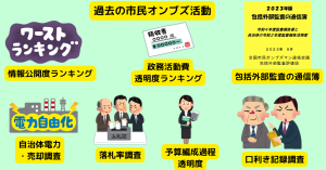 また、「全国情報公開度ランキング」を行うことで自治体間の情報公開の取り組みを促し、情報公開請求しなくても自治体のWEBページで情報を公開させてきました。